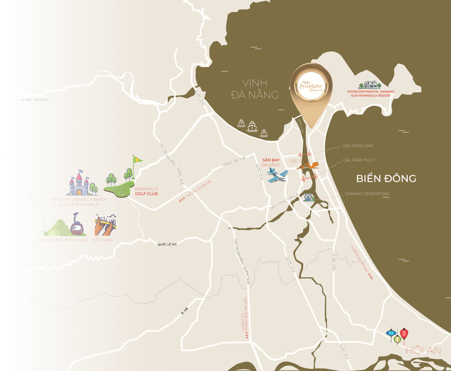 Nằm trên dải đất bồi hiếm hoi bên hạ nguồn sông Hàn, nơi cửa sông đổ ra biển, Sun Symphony Residence không chỉ đem tới đặc quyền về vị trí, cơ hội đầu tư, kinh doanh không giới hạn khi loạt quy hoạch tương lai thành hình, mà hơn hết còn mang đến giá trị sống, nghỉ dưỡng, tận hưởng. Đây cũng là địa thế được đánh giá cao về giá trị phong thủy, thịnh vượng.